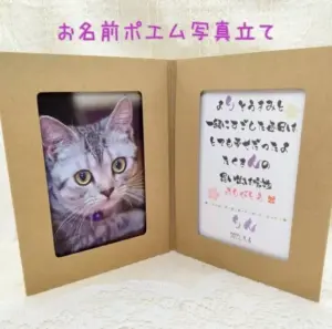 ポエムは、見開きの紙製の写真立てに入れてお届けいたします。