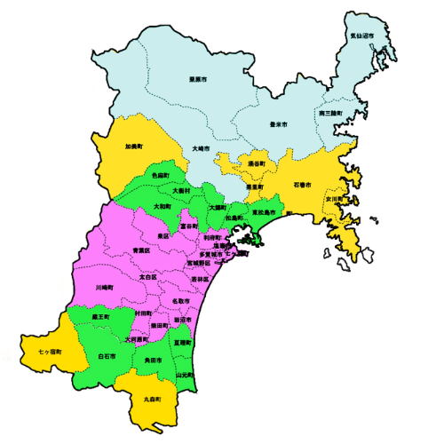宮城県全域に訪問いたします。基本エリアの訪問に追加料金はかかりません。